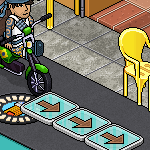 Segunda misión: Súbete a la moto, da clic en las casillas Flecha para avanzar, ve a casa de Roninho y salúdale (o/).
