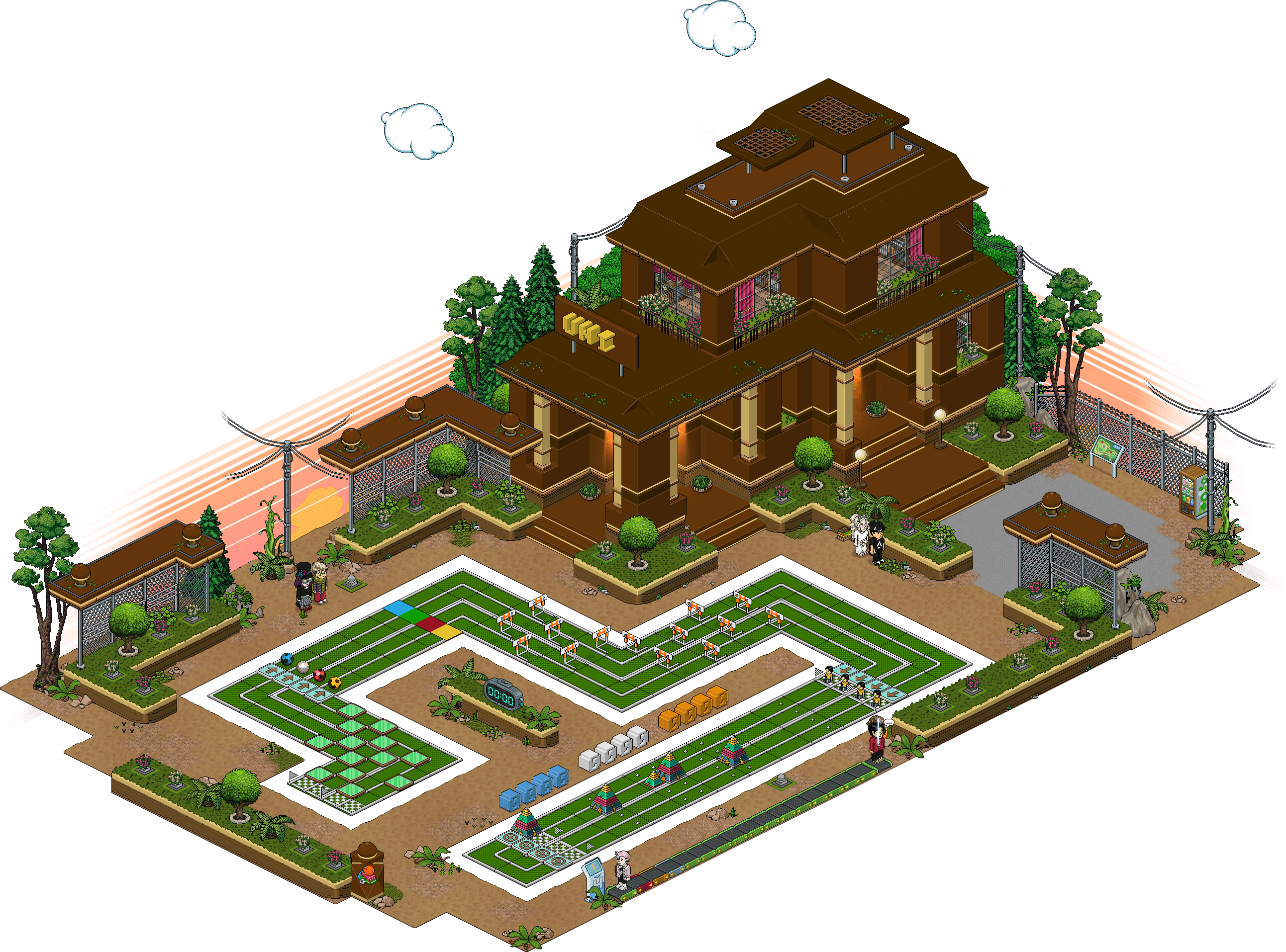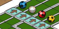 Salta los obstáculos Habbo-olímpicos colocados a lo largo de la pista.