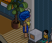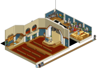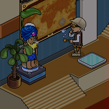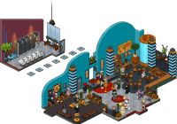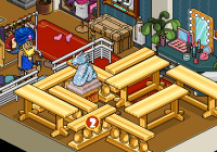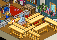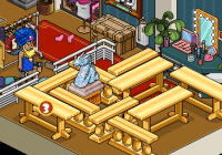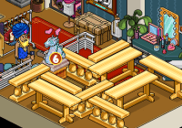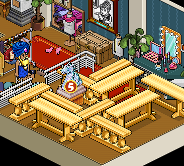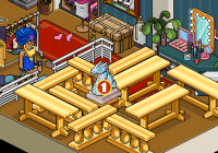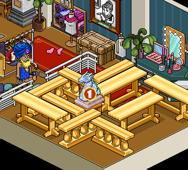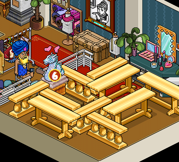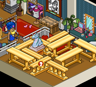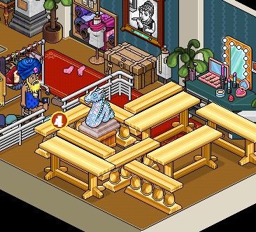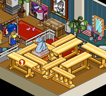Por último, deberás sentarte en el »Taburete Set TV» y hacer clic en las mesas y divisores para moverlos hasta estar frente al raro. Una vez hecho eso tendrás que hacerle click.