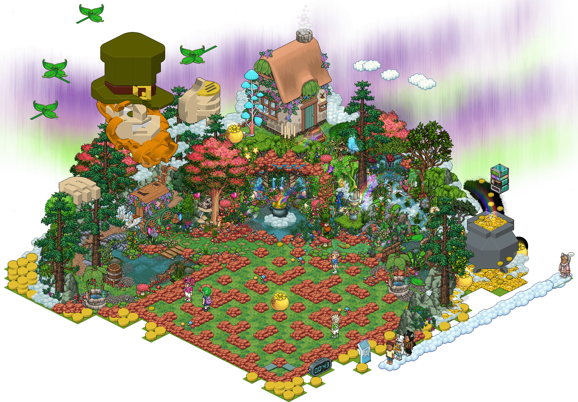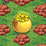Coge las 3 monedas y llévalas al caldero del centro de una en una.