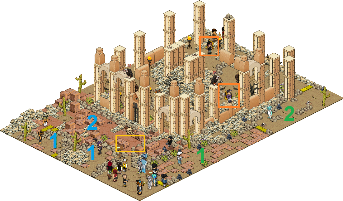 Primero deberás entrar a esta sala: La sala desértica de Sefos, y una vez dentro deberás seguir las siguientes indicaciones.