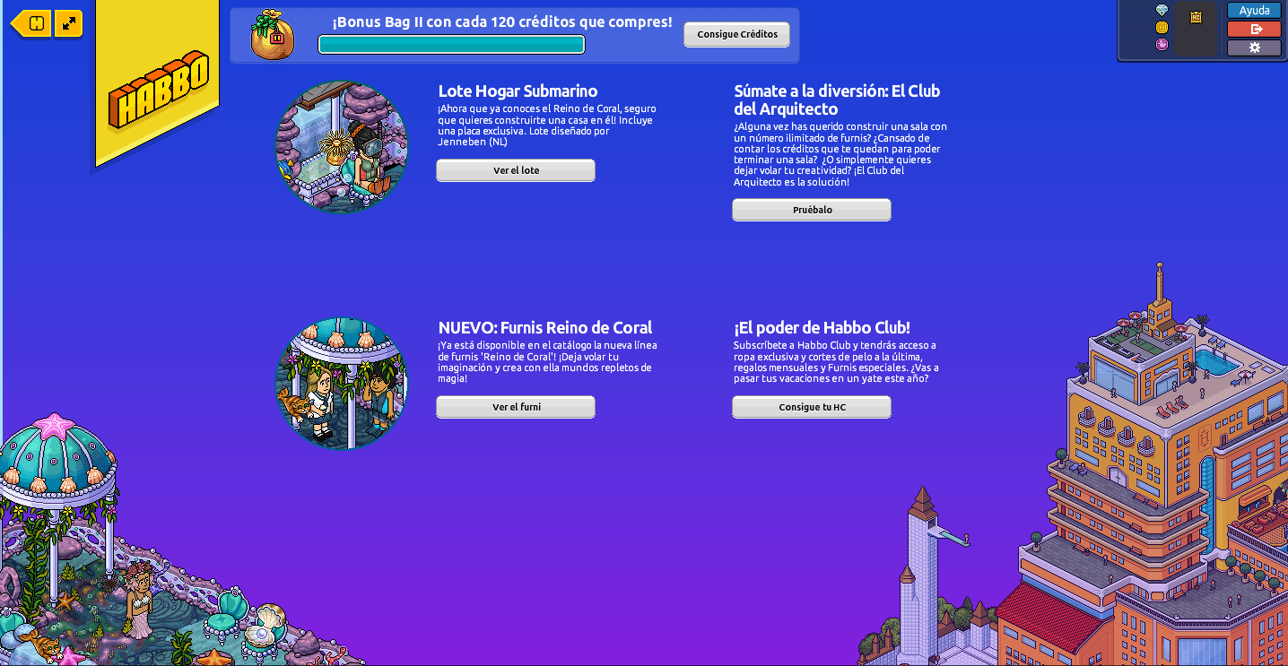 La campaña Reino Coral, al fin ha llegado a Habbo y con ella un montón de nuevas sorpresas, entre estas, podemos destacar los nuevos furnis, junto a un nuevo lote, una nueva vista, los furnis Bensalem… ¡hay a elegir muchísimos furnis a elegir! ¿Quiéres conocer toda la información? ¡Pues sigue leyendo!