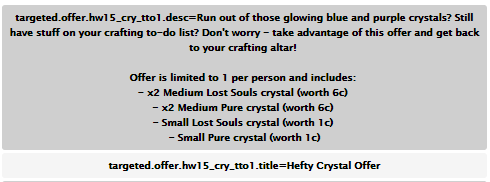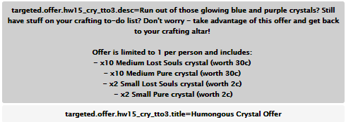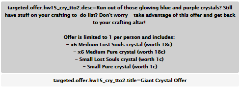 El arte de craftear es algo que está gustando mucho en esta campaña de HabboWeen, y no hay nada más gratificante que ganar tus máscaras, u otros furnis mediante estos cristales, así que habbo ha registrado cuatro ofertas para poder adquirir los cristales.
