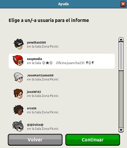 Aquí hacemos click a la persona que queremos reportar y seleccionamos el chat que consideremos que debe ser revisado por los Staff.