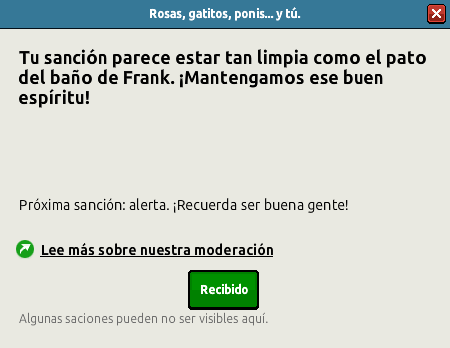 También te habrás dado cuenta de que hay dos botones más abajo: lee más sobre nuestra moderación y estatus de mi sanción.