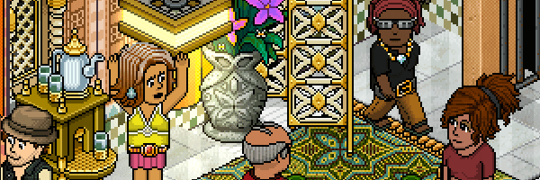 Mañana, por fin, llegará a Habbo la campaña Bazar, la que nos estará acompañando durante todo el mes de agosto con juegos, salas, furnis, etc. Y hoy, como es costumbre, se han registrado ocho imágenes nuevas, para promocionar los lotes de sala de dicha campaña. Sin nada más que decir, os dejamos con las imágenes: