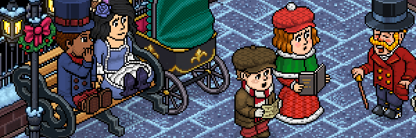 La campaña Navidades Victorianas ha aterrizado en Habbo dando guerra y nos acompañará durante todo el mes de diciembre, trasladándonos a las calles de Londres. Por eso hoy, hemos encontrado seis nuevas imágenes que será utilizada para promocionar los lotes de esta hermosa campaña. Sin nada más que decir os dejamos con la imagen: