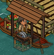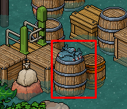 Saca un pescado del barril para hacer rotar la puerta.