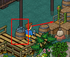 Cuando estés en la puerta transpixelar, saca un pescado del barril para hacer rotar la puerta.