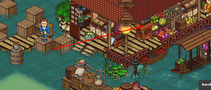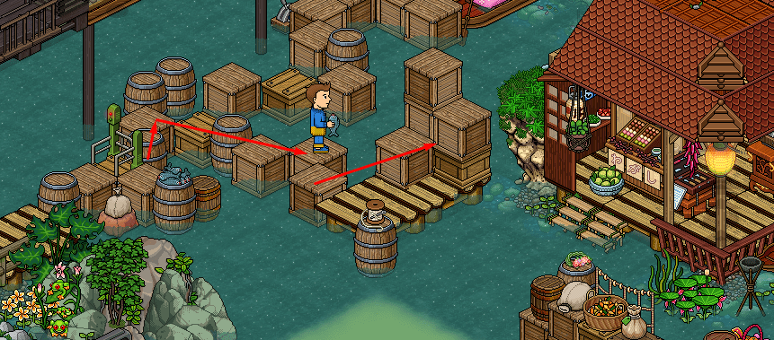 Cuando estés en la puerta transpixelar, saca un pescado del barril para hacer rotar la puerta.