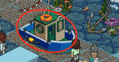 Lo primero que deberás hacer es acceder a la sala llamada «Tesoro Subacuático de Habbo» cuya dueña es Sefos. Posteriormente, súbete al barco para recibir una placa