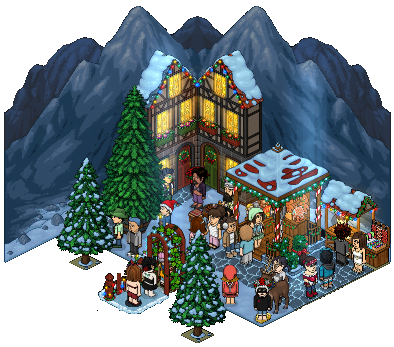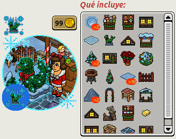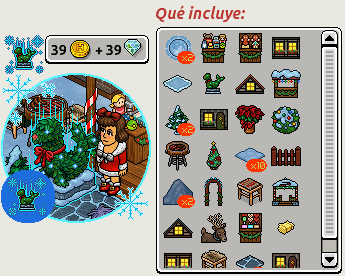 El lote se llama Navidad en Bavaria e incluye varios furnis de la campaña Navidad y un furni exclusivo que podrás conseguir por su compra. El lote lo puedes comprar por 39 créditos y 39 diamantes o por 99 créditos. También podrás logar una placa exclusiva por la compra.