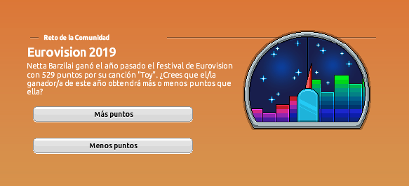 Al entrar a habbo, justo en la página principal te encontrarás con la encuesta, en la cual, deberás elegir si el ganador/a de este año, obtendrá más o menos puntos que la ganadora del año pasado, la cual obtuvo 529 puntos por la canción «Toy».