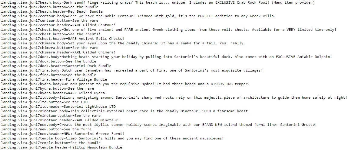 Como ya sabrás, se avecinan dos nuevas campañas. Por un lado, tenemos la Campaña Sci-fi que entrará próximamente en el Hotel y por otro lado tenemos la Campaña Santorini. Esta última campaña entrará en vigor en el mes de junio. A continuación os dejamos los códigos encontrados y a qué hacen referencia: