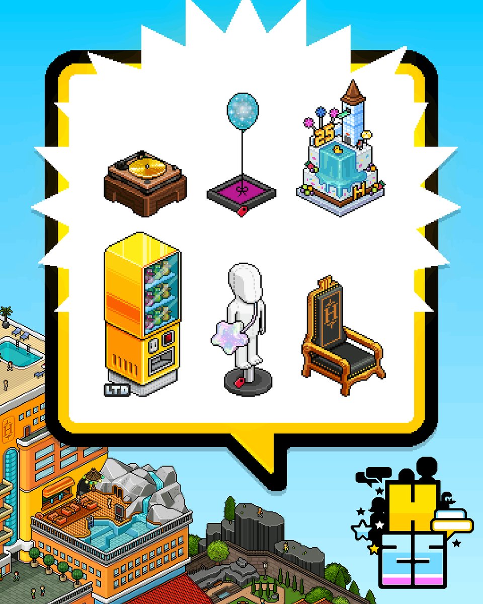 Premios del evento del 25 Aniversario de Habbo, que serán repartidos exclusivamente en actividades de redes sociales