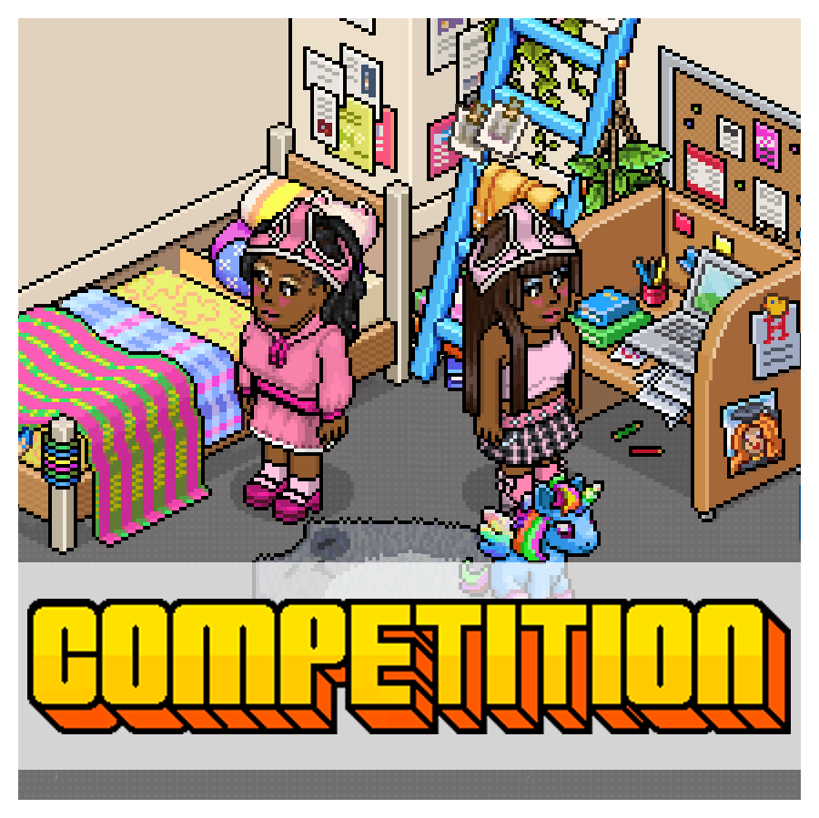 Etiqueta en Twitter a @Habbo junto a dos amigos e incluye el hashtag #HabboUniversity.