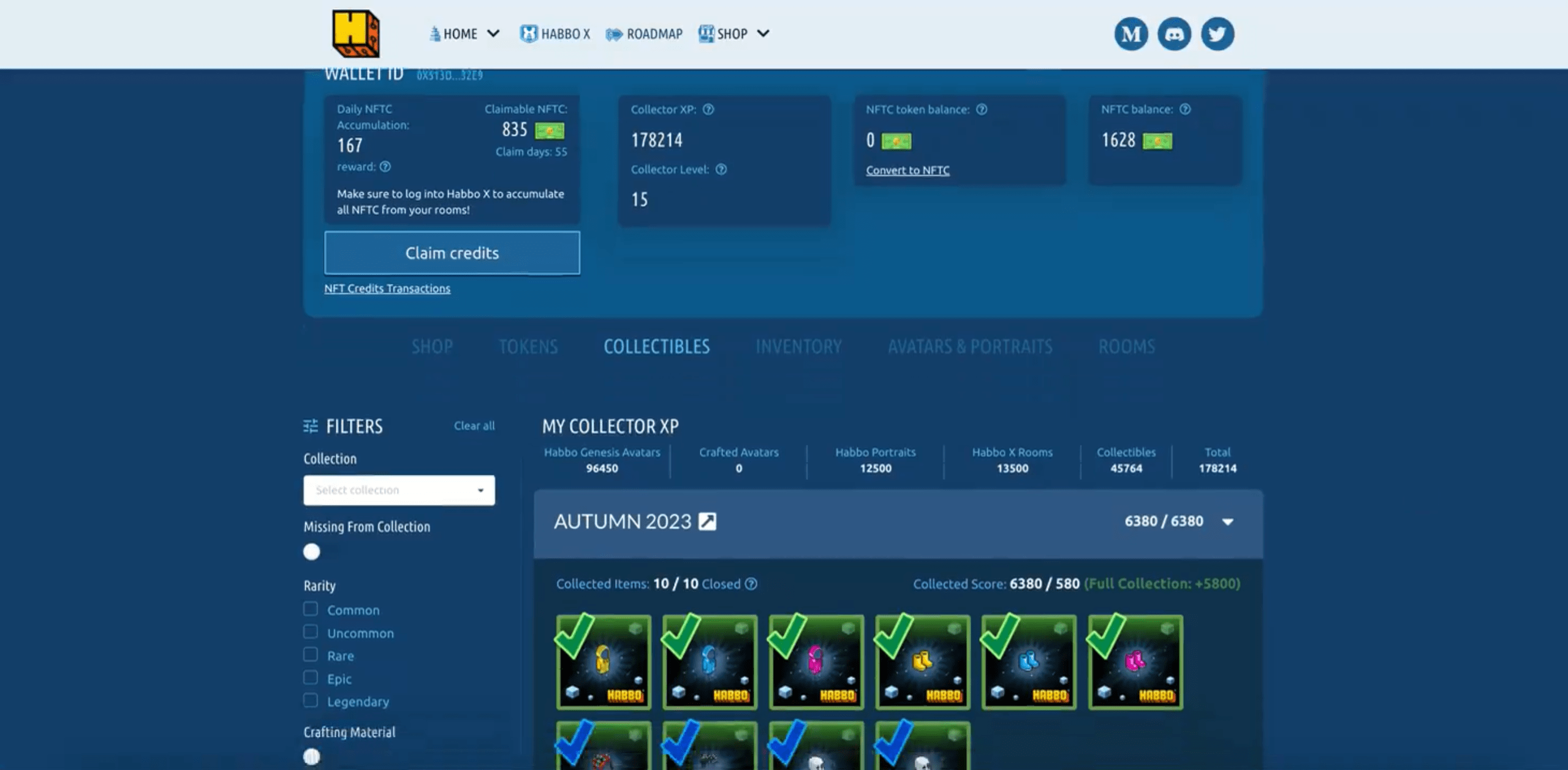 En esta sección también puedes filtrar la búsqueda por colección y por coleccionables (en propiedad o no, por su tipo y por los que son resultados de crafteo).