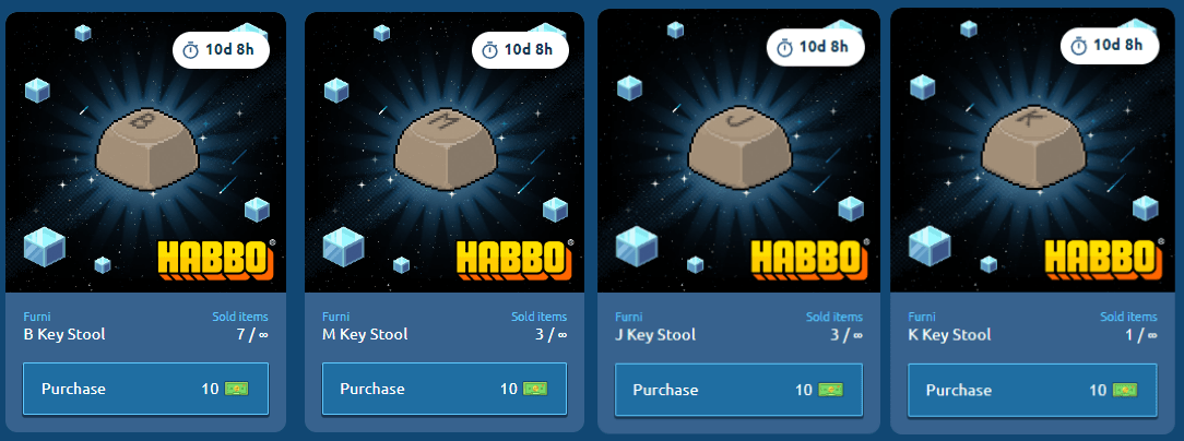 Se trata de 4 sillas teclas con letra de abecedario que faltaban por salir a la venta, estas son la B, J, K, M, las cuales están disponibles para su compra por el módico precio de 10 créditos NFT cada una. Todas estas, estarán disponibles por tiempo limitado, es decir, tienes un plazo de 10 días desde este momento, además, debes tener en cuenta que los furnis NFT NO son tradeables; solo podrás venderlos a través de Inmutable X, TokenTrove u Ownable X. A continuación, os las mostramos: