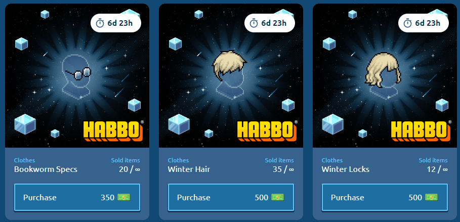 [NFT] En venta: Cabello y Gafas de lectura Hace 3 años -d-selene-b- 7 Popular Archivada Información de la publicación Publicada: 15/02/2023 13:22:45 H.P.E. Autor: -d-selene-b- Último comentario:@ngelytox Ir Visitas: 1163 Información general Categoría: Furnis en venta Tipo: Prenda NFT Precio: 350 y 500 Fecha de inicio de venta: 15/02/23 Fecha de final de venta: 22/02/23 Lugar de venta: Tienda NFT Imagen de las prendas y Tienda Ir a la Tienda NFT