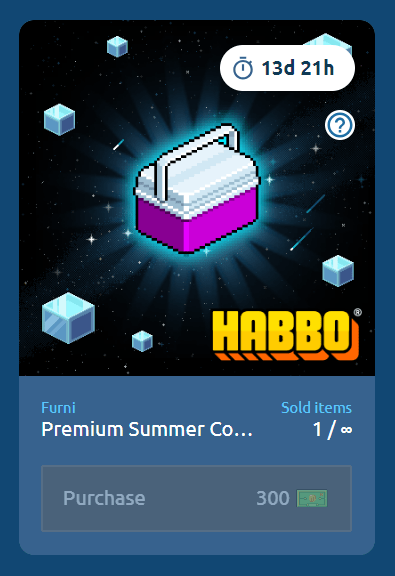 [NFT] En venta: Crackable Nevera Premium de Verano Hace 3 años Dantempo 5 Popular Archivada Información de la publicación Publicada: 03/07/2023 15:10:02 H.P.E. Autor: Dantempo Último comentario:@ngelytox Ir Visitas: 451 Información general Categoría: Furnis en Venta Tipo: Furni NFT Precio: 300 Fecha de inicio de venta: 03/07/2023 Fecha de final de venta: 17/07/2023 Lugar de venta: Tienda NFT Disponible en BC: No Imágenes del furni y de la Tienda NFT Ir a la Tienda NFT Guía del Crackable Probabilidades: Nevera Premium de Verano Guía de Crafteo
