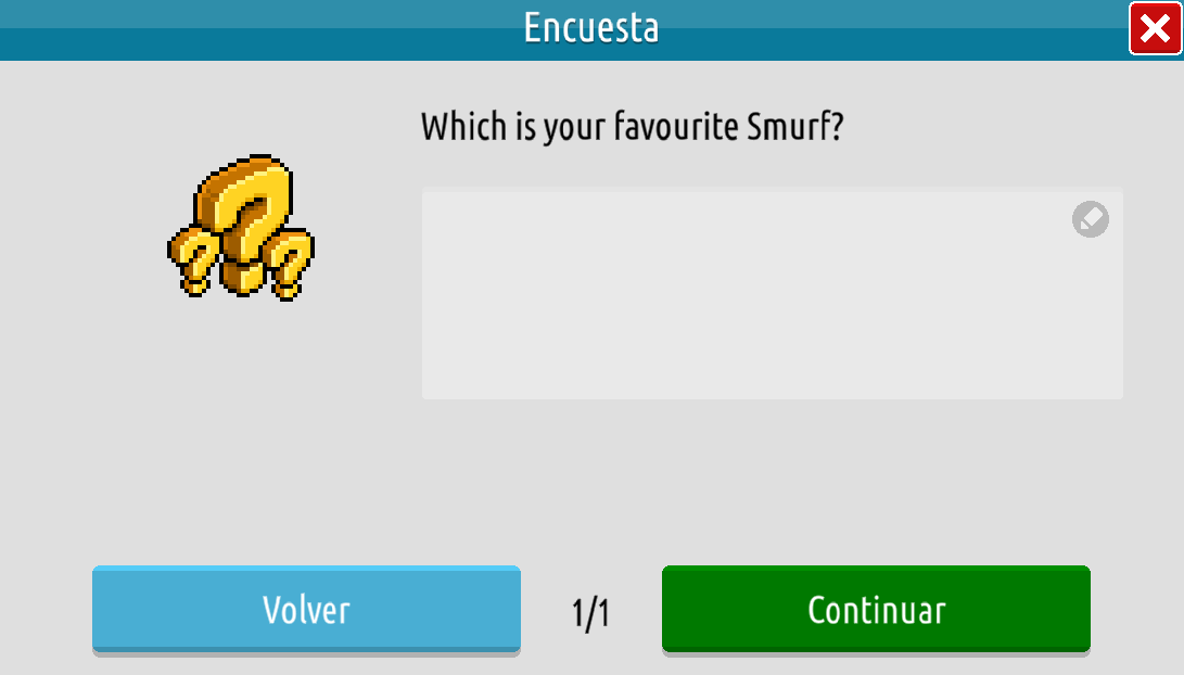 Pregunta 1: ¿Cuál es tu pitufo favorito? (Papa Smurf, Brainy Smurf, Hetty Smurf, etc.)