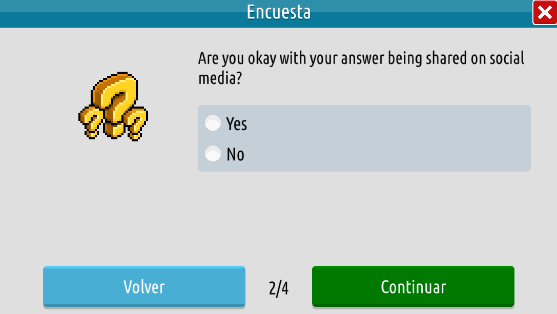 Pregunta 2: ¿Estás de acuerdo con que tu respuesta sea compartida en las redes sociales?