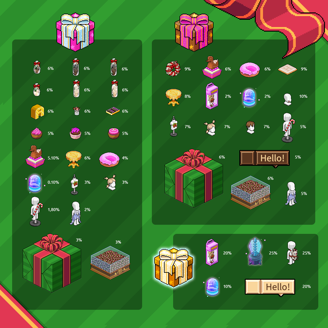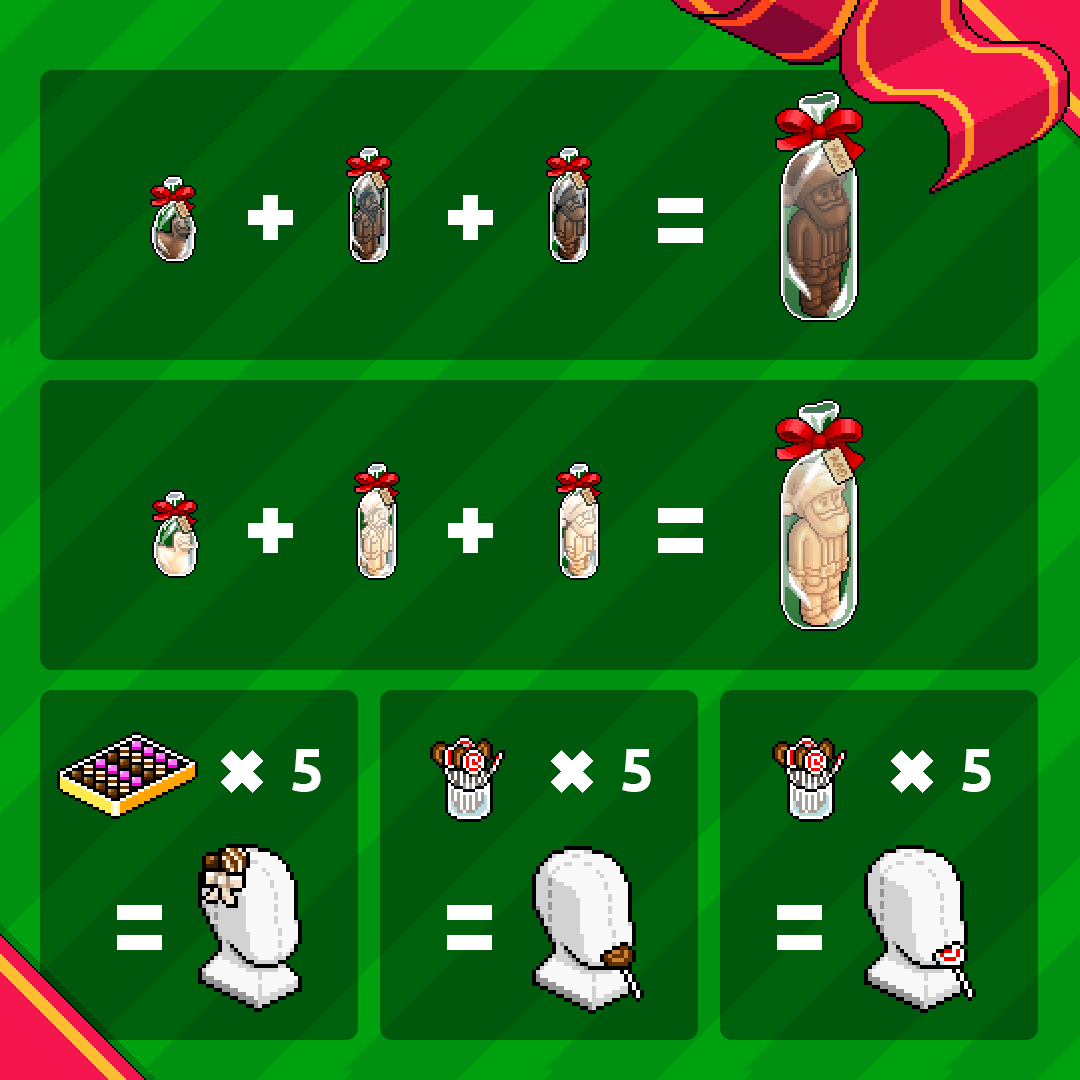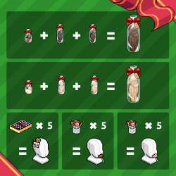 Durante este evento navideño, podrás obtener tres crackables diferentes que contienen varios artículos coleccionables, y uno de estos crackables también dará algunos furnis coleccionables con los que podrás craftear nuevos ítems coleccionables.