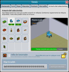Además, esta función estará disponible únicamente en el cliente Moderno de los hoteles de Habbo, excepto en Habbo X. Estará ubicada en una pestaña dentro del catálogo llamado Armario del Coleccionista: