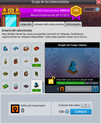 En la parte superior, puedes consultar tu nivel de coleccionista y tus puntos de experiencia actuales y el mayor número de puntos de experiencia que has tenido en el pasado.