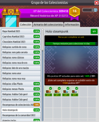 Al entrar en cada una de las colecciones, podrás ver: las miniaturas de los ítems, la experiencia y el bonus de experiencia por completar la colección y una cuenta atrás.