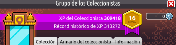 Además, esta pantalla presenta tres pestañas llamadas Colección, Armario del Coleccionista e Información: