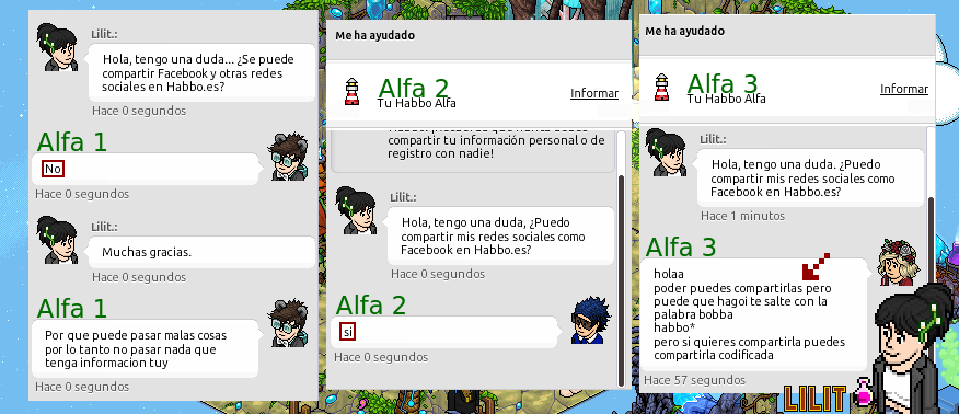 Uno responde que sí, otro que no, y la tercera que lo haga en clave para que no me salga bobba. Esta última es una “Habbo Alfa modélica” desde luego.