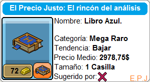 Como recordatorio de la sección llamada: El Rincón del análisis, desde esta sección analizaremos los distintos furnis, raros o mega raros, para que sepas su valor actual, el valor medio (que es la media del precio a lo largo de la historia), su tendencia si es de subir o de bajar, su categoría, su tamaño y el nombre del usuario que sugirió el análisis.