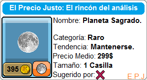 Como recordatorio de la sección llamada: El Rincón del análisis, desde esta sección analizaremos los distintos furnis, raros o mega raros, para que sepas su valor actual, el valor medio (que es la media del precio a lo largo de la historia), su tendencia si es de subir o de bajar, su categoría, su tamaño y el nombre del usuario que sugirió el análisis.