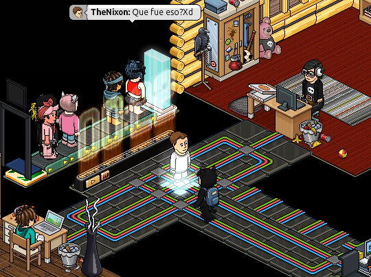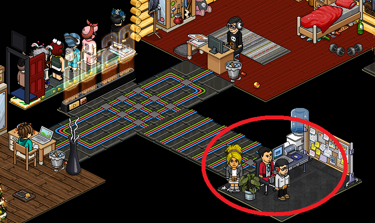 A esto se le añade que se olvidaron de taponear la zona de abajo y los habbos caminan libremente. Además en esa zona, al acabar el tiempo, el wired no los regresa.