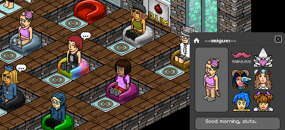 Estos peculiares y llamativos looks lo tienen en su mayoría, gente que tiene el Habbo Club. Se ponen colores muy chillones, combinando ropa, peinados etc. del habbo club con ropa normal.