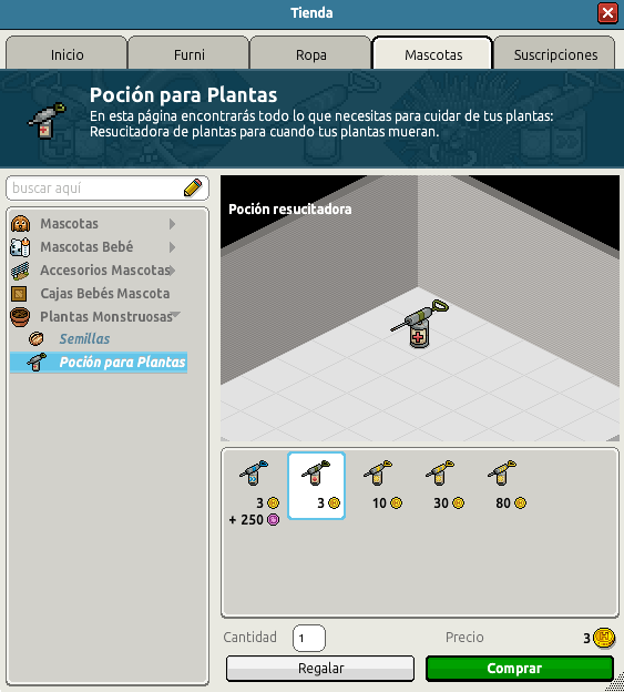 Para poder conseguir las recompensas Sanador de Plantas Monstruosas, deberás tener el furni «Semilla de Planta«, plantarla y, por último, dejar que se muera. Para poder dejar que se muera, lo único que tienes que hacer es, no tratarla. Una vez que se muera deberás comprar la pócima resucitadora, y usarla sobre la planta que quieres revivir. A continuación, irás recibiendo las recompensas, según la cantidad de plantas monstruosas que revivas: