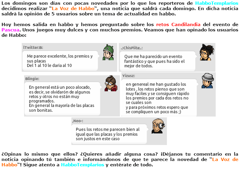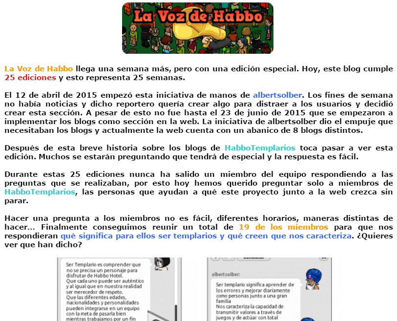 Edición 25 de la Voz de Habbo. Primera vez que pudieron participar los miembros del equipo dando su opinión directamente y no a través de los comentarios.