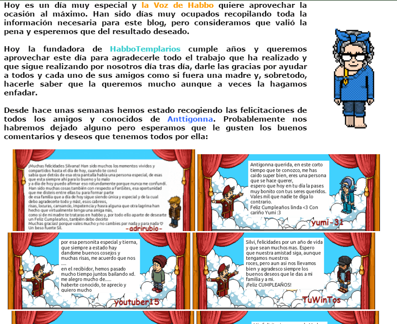 Edición 46 de la Voz de Habbo. Aprovechando que era el cumpleaños de la fundadora de HabboTemplarios buscamos a todos sus amigos de Habbo para que le desearan un feliz aniversario.