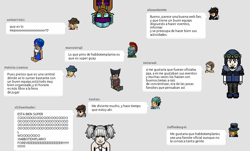 Sin más dilación pasemos a la pregunta de esta edición. Habbo Templarios ha crecido a rimo constante y creímos oportuno preguntar a los usuarios qué opinan de la web, de sus miembros y de su evolución: