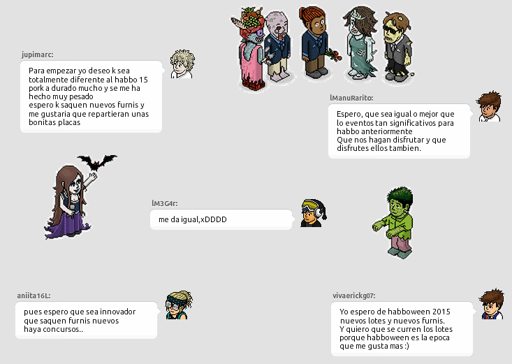 ¿Sabes que evento es? ¡Exacto! El evento más terrorífico del año: Habboween 2015. Hoy hemos salido a preguntar qué esperan los usuarios de dicho evento y cómo quieren que sea. ¡Veamos que han dicho!: