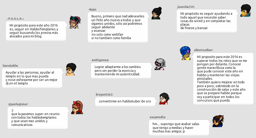 驴Te gustan sus prop贸sitos? 驴Cu谩les crees que se cumplir谩n? 驴Cu谩les son tus prop贸sitos? HabboTemplarios espera que cumplas todos tus prop贸sitos y que visites a menudo la web este 2016. 隆No olvides dejar un comentario con tu opini贸n!
