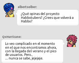 Por esta edici贸n final os traemos las mejores respuestas sobre proyectos de habbo de manos de nuestro querido staff QxHurricane, quien a pesar de todo el trabajo que tiene acept贸 respondernos de una forma muy amable. Durante esta breve entrevista nos respondi贸 sobre distintos proyectos de habbo como el proyecto baw, el de embajadores y las fansites. Sin m谩s dilaci贸n pasemos a ver sus respuestas: