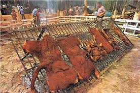 Asado con cuero: Es carne cocida, con el cuero, preferiblemente se usa carne vacuna u ovina.
