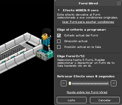 – 2 efectos wired: a cero – 1 condición wired: furni con avatares