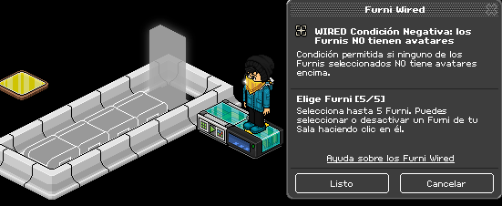 – 1 causante wired: sobre un furni – 1 condiciñon wired negativa: furnis no tienen avatares