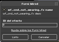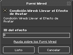 Estas condiciones funcionan de tal forma que el efecto se cumplirá o no, si llevamos puesto o no, un efecto de avatar concreto. El panel de estos wired es de la siguiente manera: