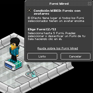 Paso 5: Cogemos la condición wired: furnis con avatares y seleccionamos las dos casillas color. Hecho esto, apilamos todos los wired.
