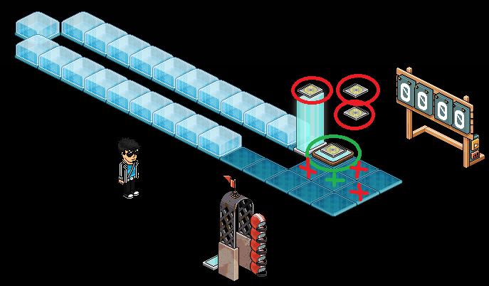 *NOTA*: Los furnis marcados en rojo deben colocarse a una altura de 3 y la casilla color (marcada con el color verde) debe colocarse a una altura de 1.2