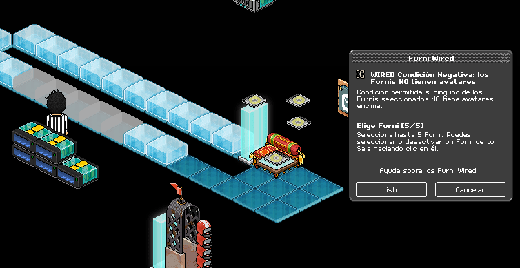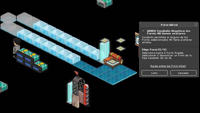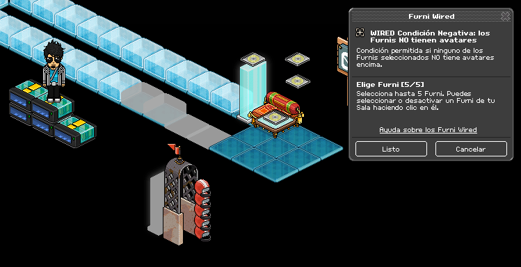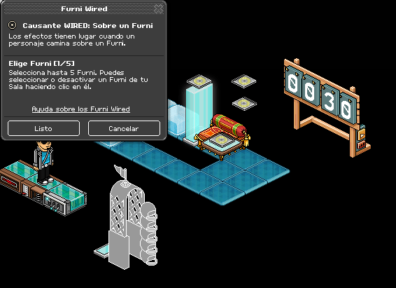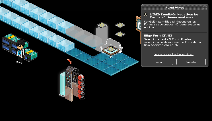 NOTA: Si se nos buggea de esta manera, podemos apilar: causante wired: sobre un furni + causante wired: acaba el juego + efecto wired: mutar de la siguiente manera.